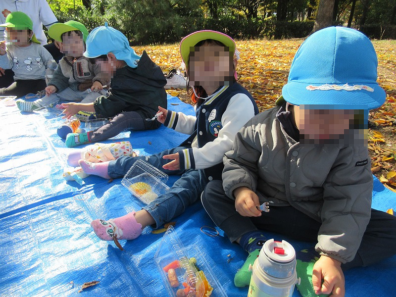 たくさん遊んだ後はお腹がペコペコ〜お待ちかねのお弁当タイム!(全員分のお弁当を調理師さんが6時半から作ってくれました)パクパクモグモグ凄いいきおい!おかわり続出のお弁当タイム(笑)
