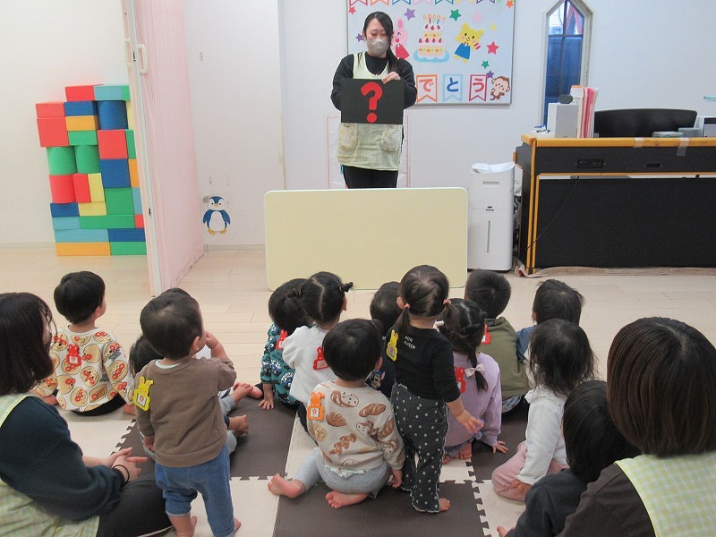12月はTちゃんのお誕生月。恒例の先生方の出し物を楽しんだら、バースディカードを受け取って♪みんなでお歌のプレゼント♪手作りショートケーキ、牛乳でカンパーイ!