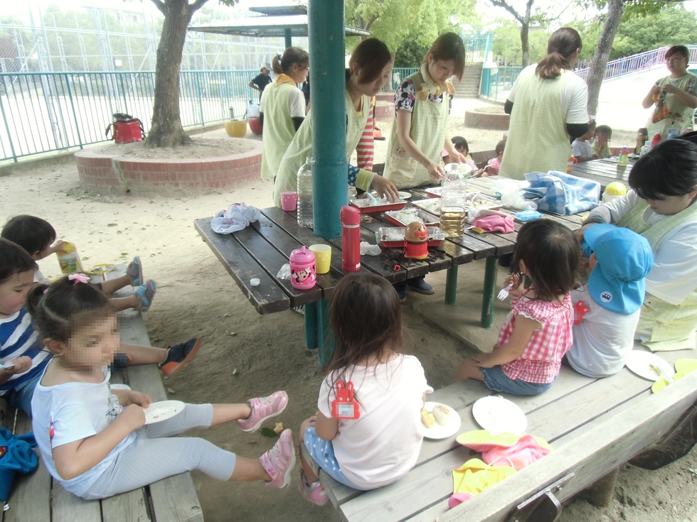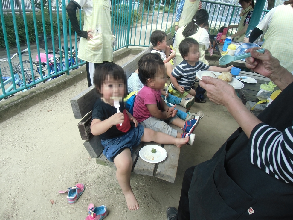 そして、お弁当タイム。(左右下写真)みんなすごい食欲です。パクパクモグモグ美味しいね〜(^o^)。