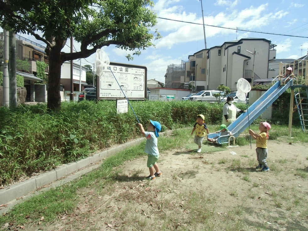 「捕って〜捕って〜」、子天使ちゃん達のリクエストにSi先生とH先生は虫捕り網を持って走り回ります(笑)。