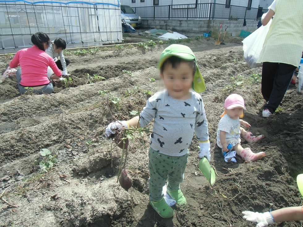 初めておいも掘りをする0才児・1才児子天使ちゃん、興味しんしん(^-^)。