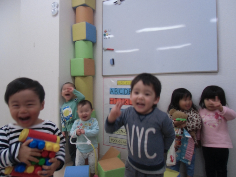 1,2才児が共同作業でなにかを作るということだけでも、なかなか出来ないことなのに、「だるま落とし」逆バージョンで大型ブロックを積み上げていくなんて!(^0^)