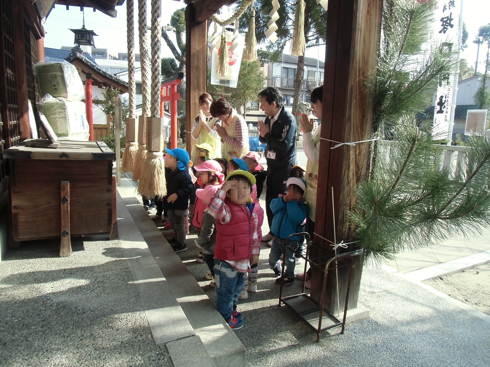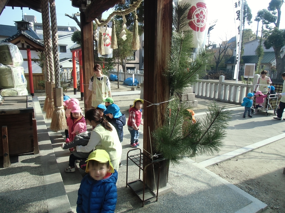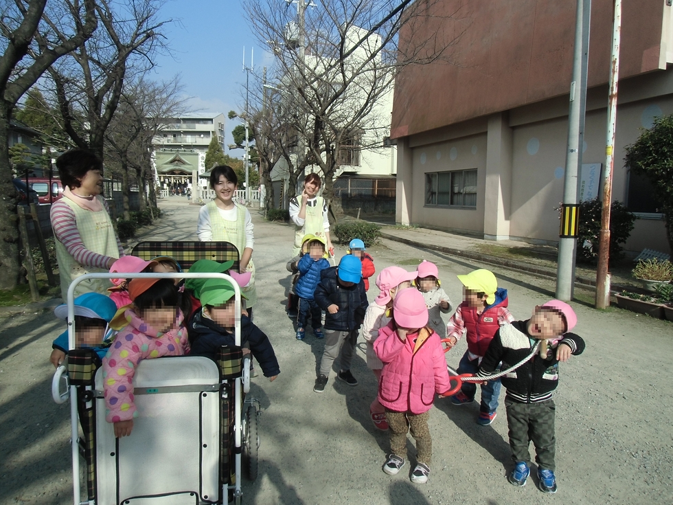 今日のお外遊びの時間はみんなで塚口神社に初詣に出かけました。