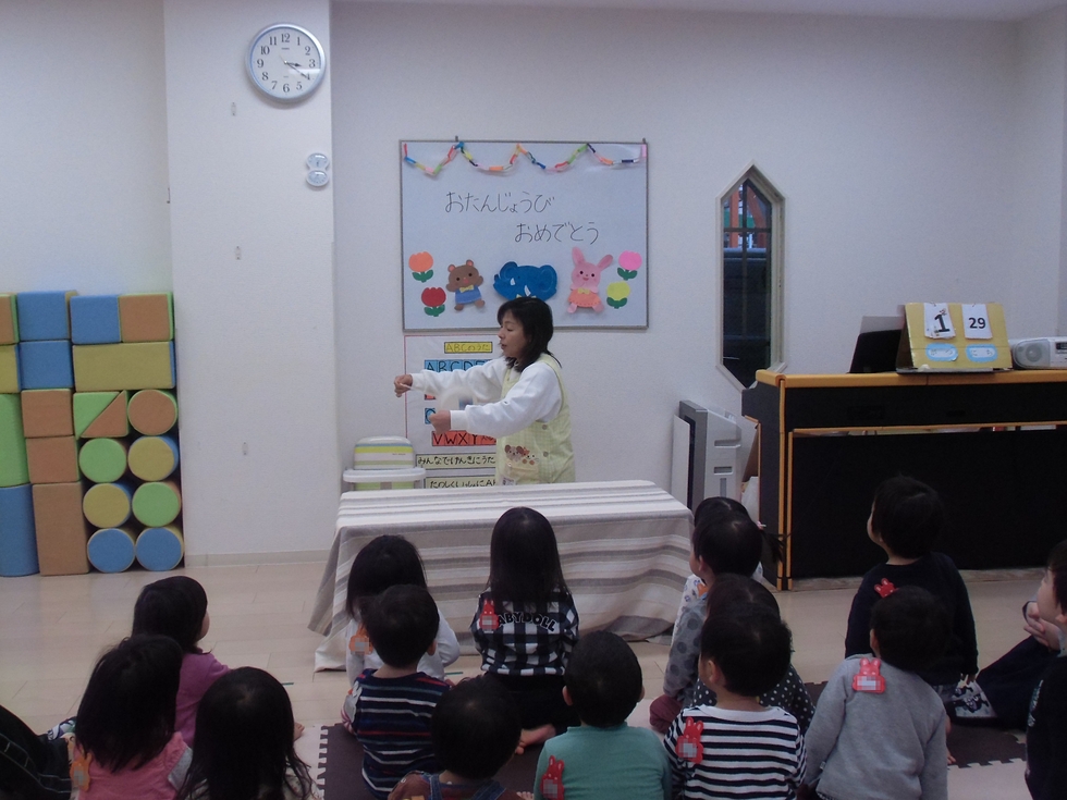 さあ、お誕生会恒例の先生による出し物の始まりです。