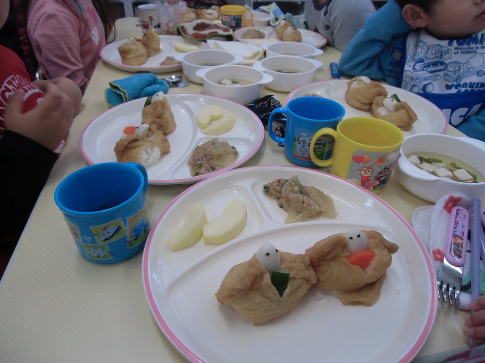 写真は「雛いなり寿司」(^-^)子天使ちゃん達、大喜び。給食士さんありがとう!