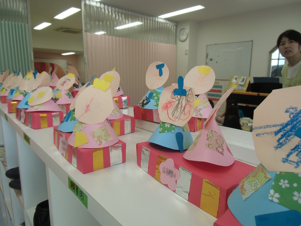 左下写真は工作の時間に作ったひな人形〜みんなよく頑張りました(^-^)
