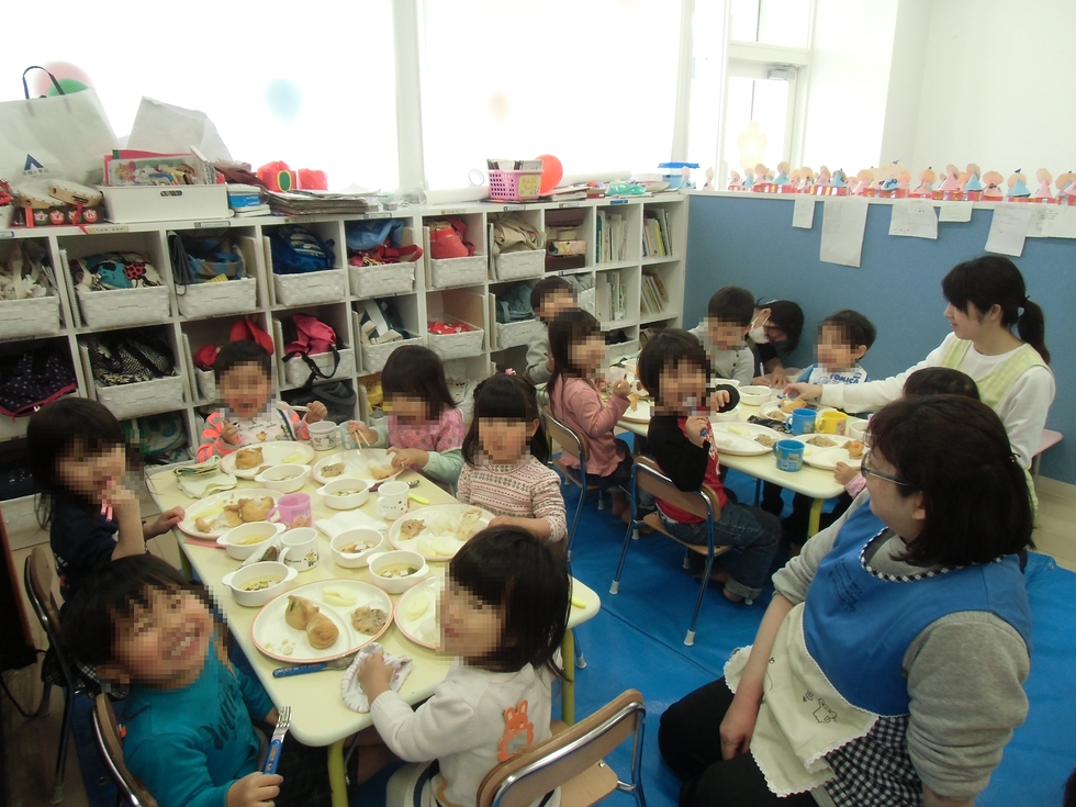 右下写真は赤組(2才児)さんと一部の橙組(1才児)さん(^-^)雛いなり寿司、食べるのもったいないね〜(笑)