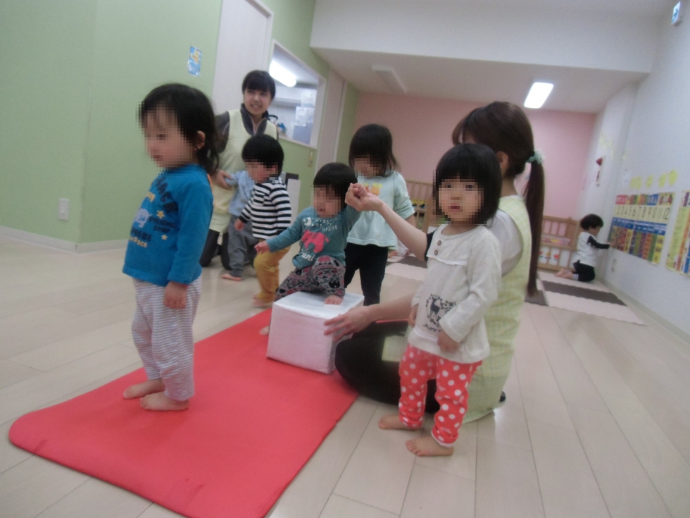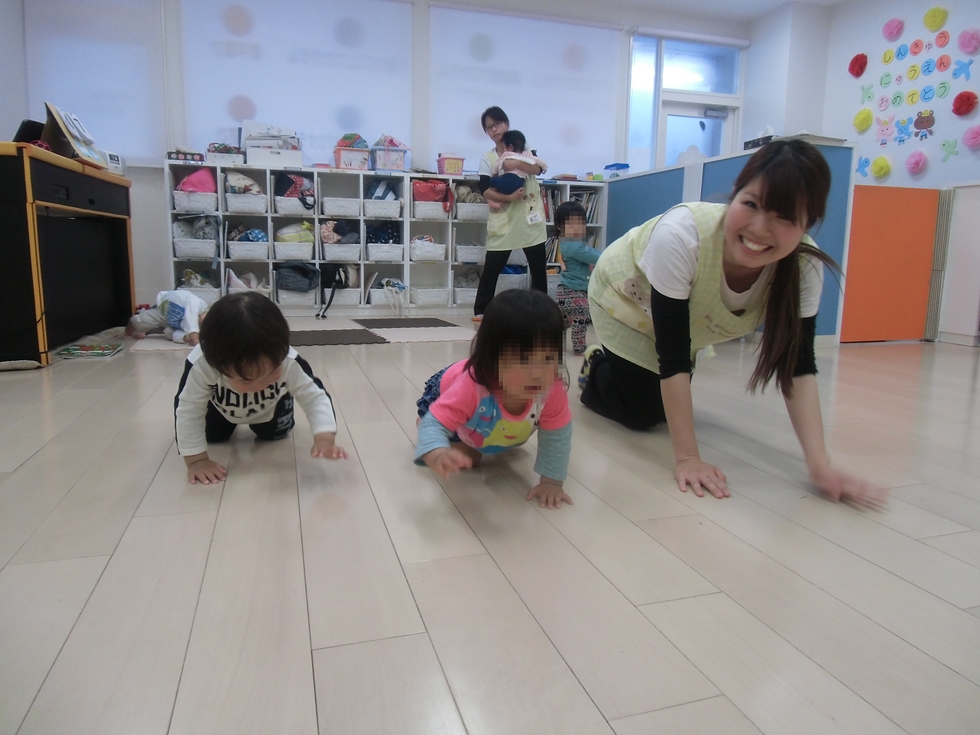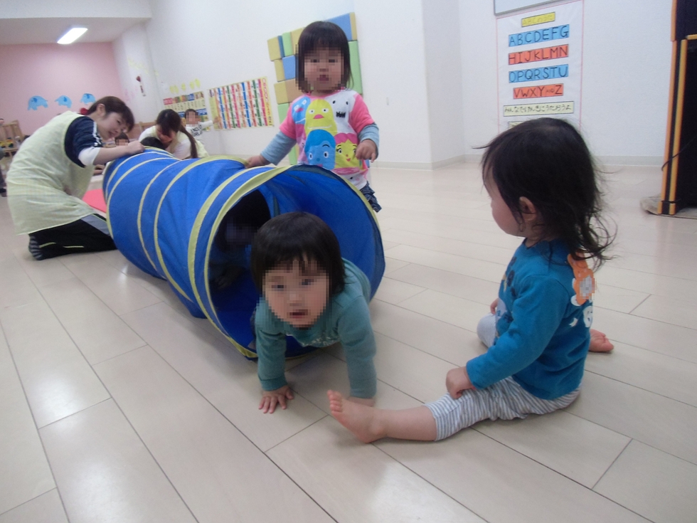 サーキット遊びを楽しんだり、先生とハイハイレースをしてみたり(^-^)。写真はこの4月に入園した子天使ちゃんたち(^o^)。