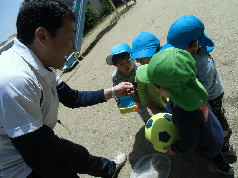 下の写真は先週金曜の戸外遊びです。公園にお出かけする子天使ちゃん達、嬉しそう〜(^o^)。園長が捕まえたアゲハ蝶を興味深々でこわごわ覗きこむ子天使ちゃん達(笑)。