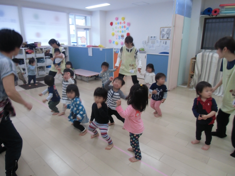 今日はダンスプログラムの日です。毎週月曜日はY,upダンススペースからY先生が来てくれています(^-^)。幼児ダンスではY先生は有名な先生なんですよ。子天使ちゃん達、楽しそう〜(^o^)。