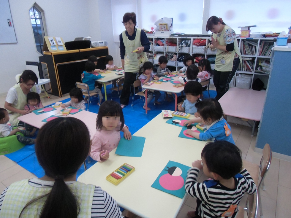この間、公園でてんとう虫を見つけました。そこで、今日の工作絵画の時間はてんとう虫を作ります。