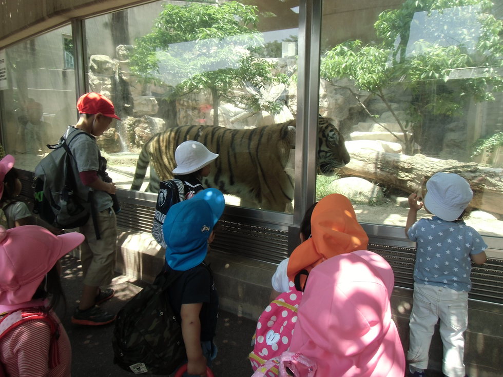 トラ檻ではトラが近くまで寄って来て、子天使ちゃん達は後ずさり、ズリズリ・・(笑)。(左下写真)