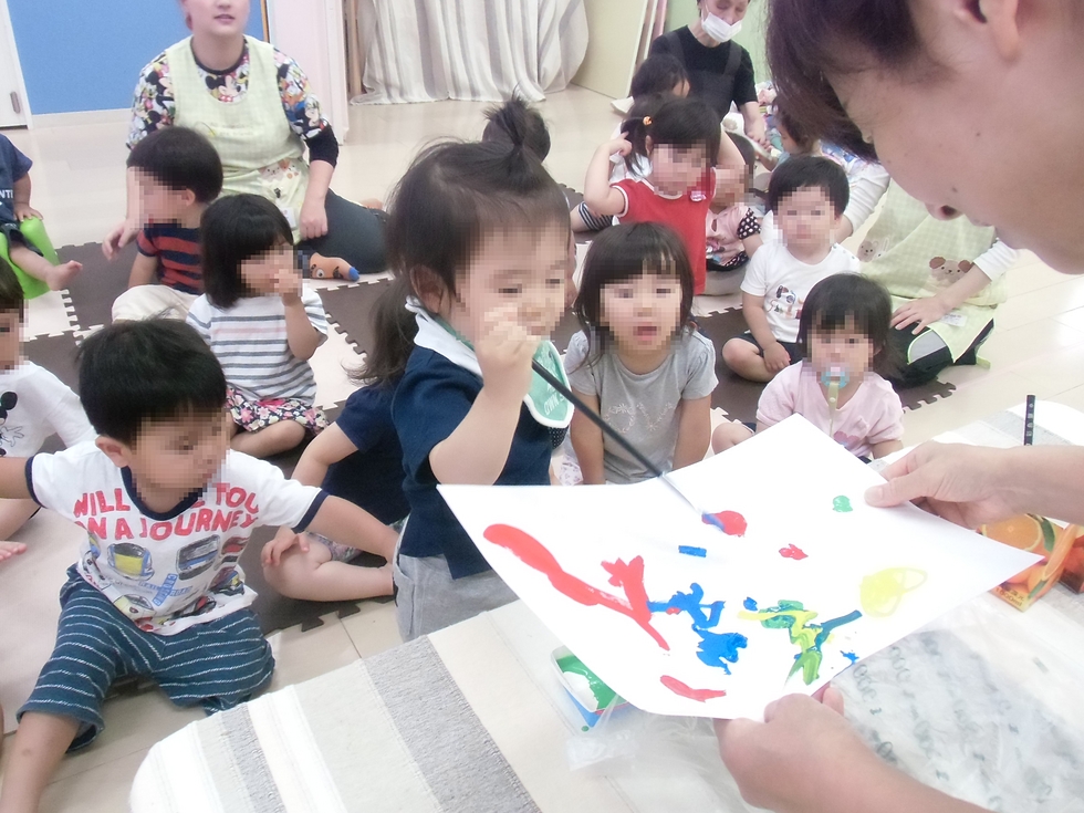 子天使ちゃん達がヌリヌリした絵具からどんな絵が出来たのかな〜(^-^)。