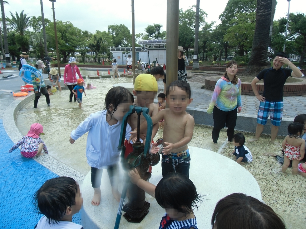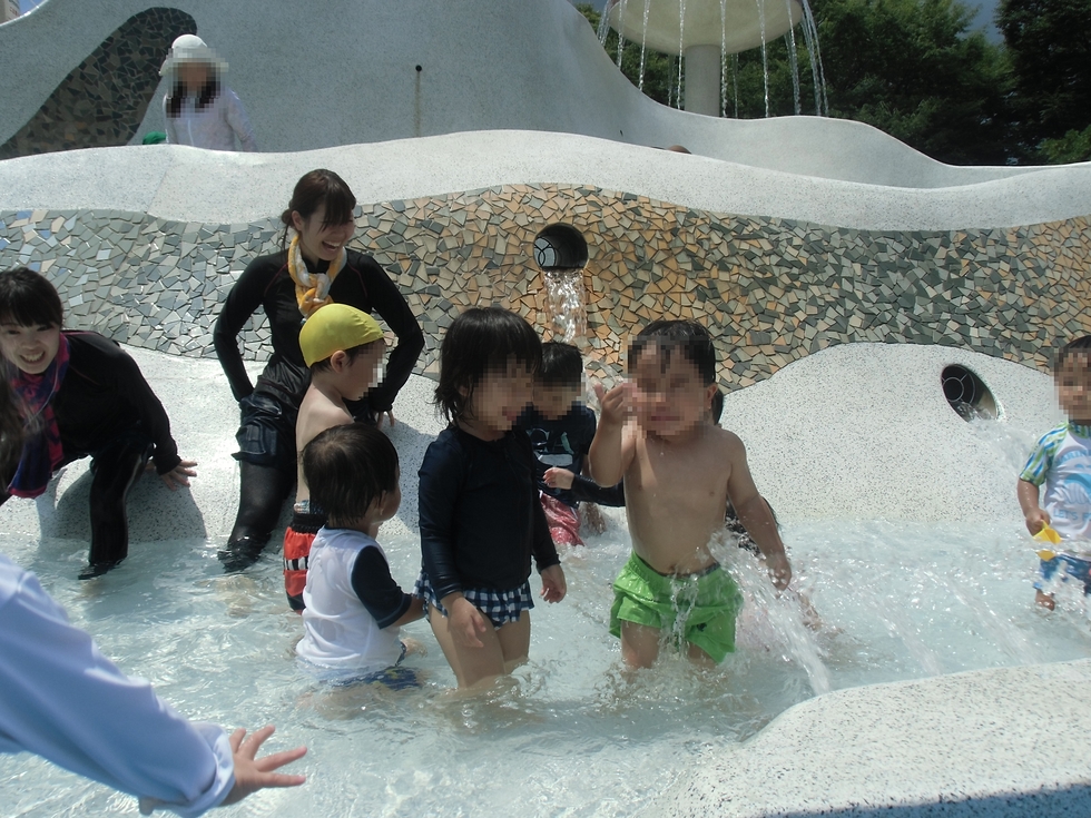 午前中は快晴で園を出発してウォーターランドに着くまでにみんな汗だく(^-^)。