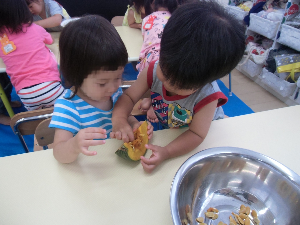 キュウリの刈り入れでは「わたしが刈るぅ!」「ぼくが取るの〜!」「○※△×□〜!!」・・あらあら誰が刈るかで揉めはじめました(>o<)。