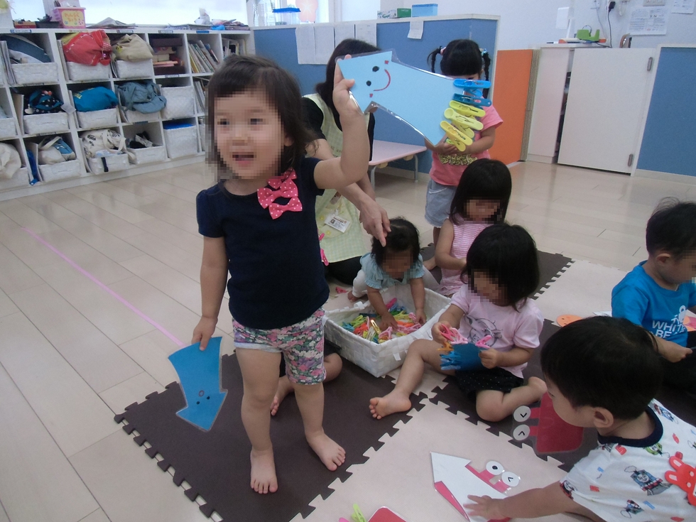 下の写真は数字遊びと設定保育「はさんで作ろう」です。どの写真の子天使ちゃんもいい笑顔の表情をしています(^-^)。