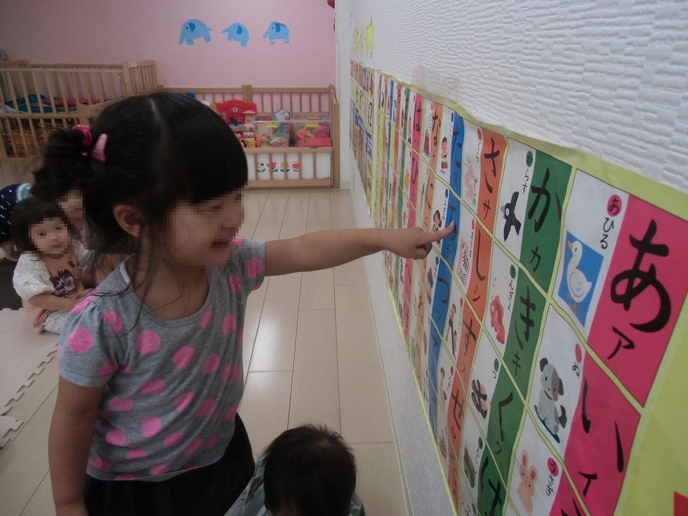 写真は今週の文字遊びの一場面・・自分の名前の文字を五十音表から探します。ちゃんと理解して問題がクリアできるのって子天使ちゃんにとっては自信につながり、しっかりとした自己肯定感を培います(^-^)。
