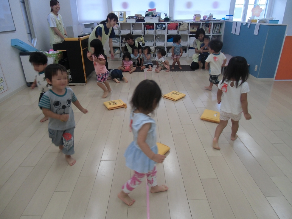 右下の写真は2才児子天使ちゃん達にブームの座布団取りゲーム。勝って喜んだり、負けて悔し涙を流したり(^-^)・・座布団取りゲームひとつからでも『ドラマ』が生まれます(^-^)。