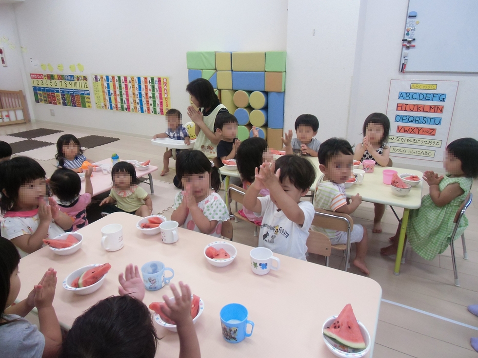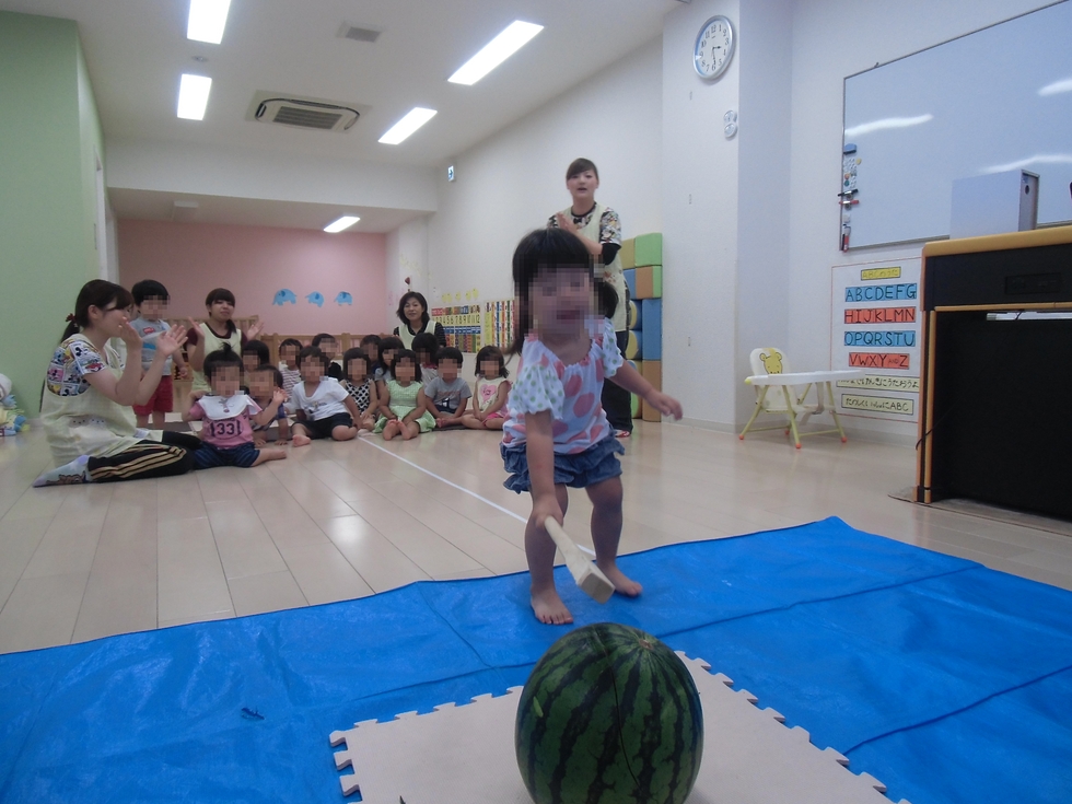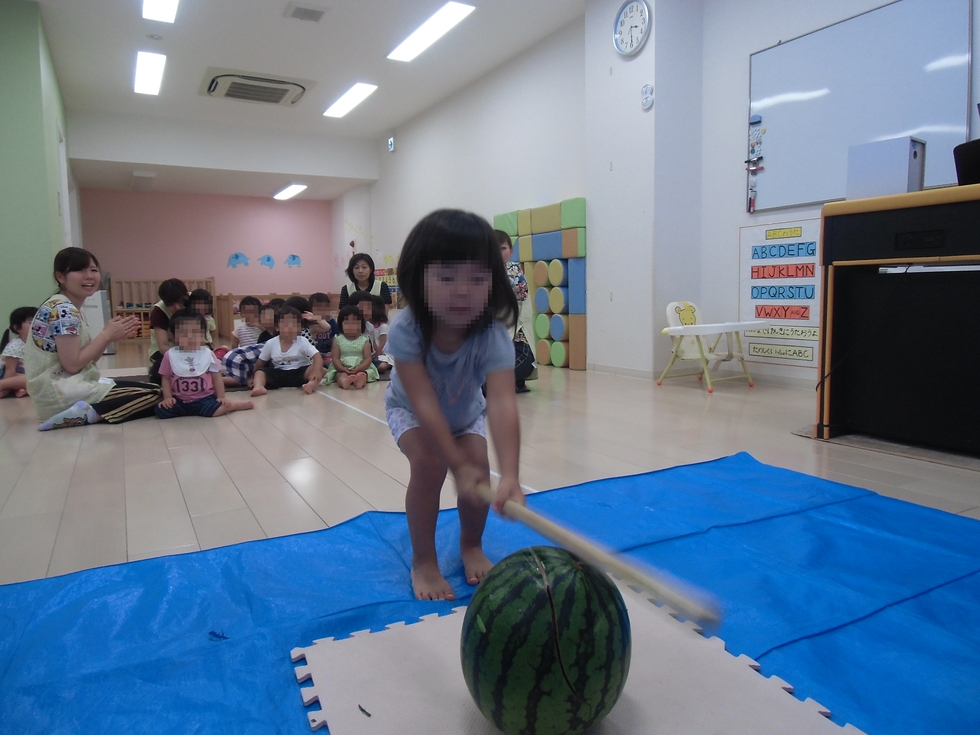 今週火曜日の午後の設定保育は食育・スイカ割りをしました。