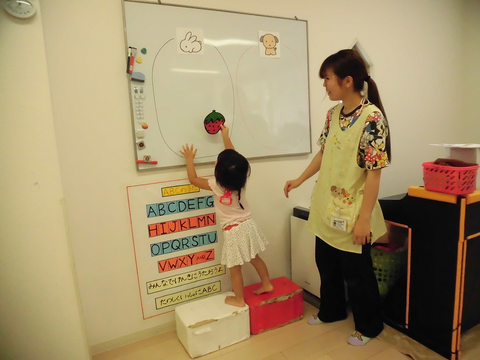 数字と言っても「1+2=3」を教えるのではありません。多い少ない、長い短い、大きい小さい、早い遅い・・等々の幼児期に取得しておかなければならない基本的概念を知るために小道具の一つとして数字を使い、遊びながら数字の概念も学んじゃいます。