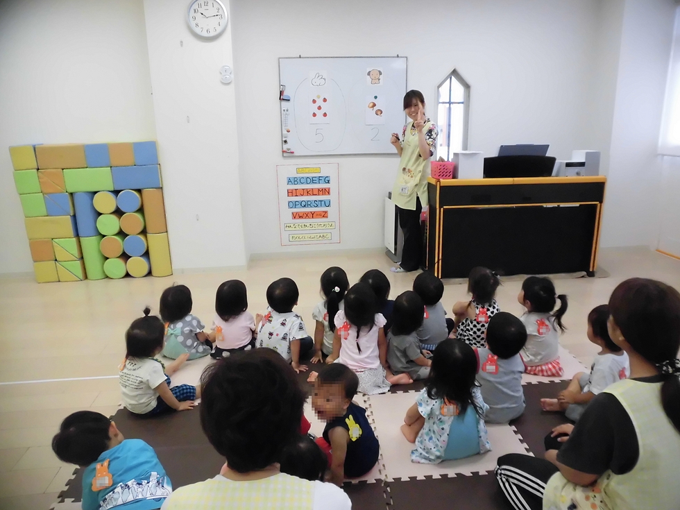 子天使ちゃん達、真剣に先生のお話を聞いています。お話が面白いから、楽しいからこそ集中力も身に付いていくんです(^-^)。