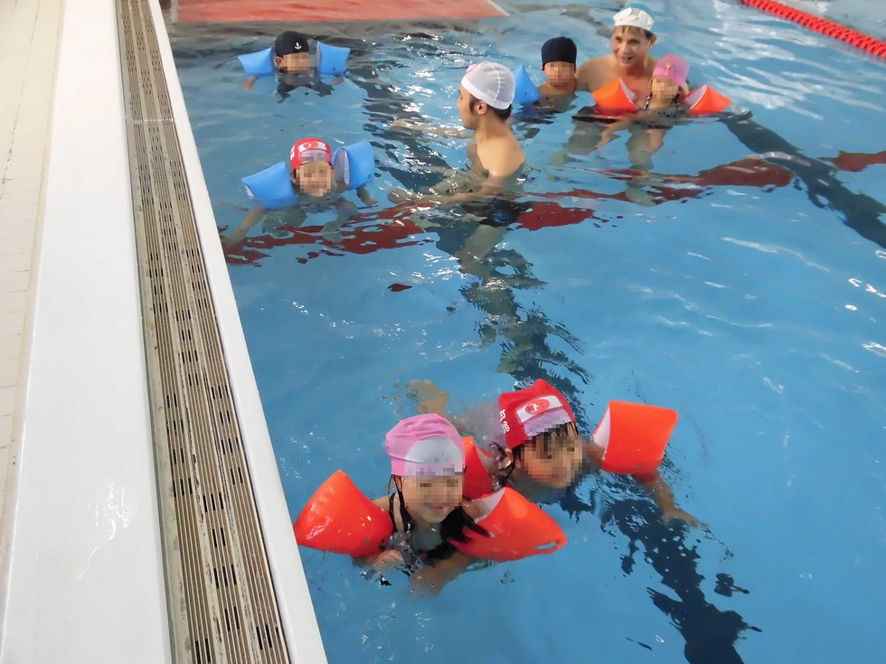 夏の間は塚口スイミングスクールにて「短期集中スイミングプログラム」を行っています。
