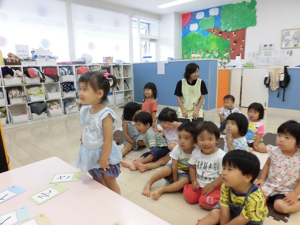 2才児子天使ちゃん達は先生に指名されてチャレンジする前から二ヤケ顔(笑)。子天使ちゃん達は自信があるとなぜかニヤケます(^-^)。