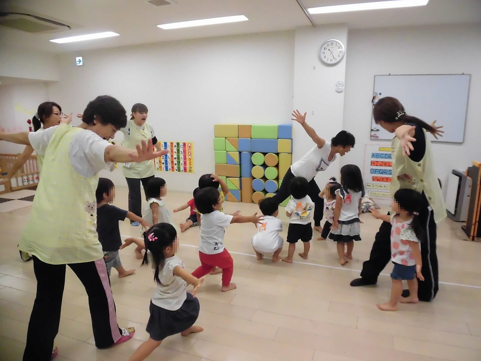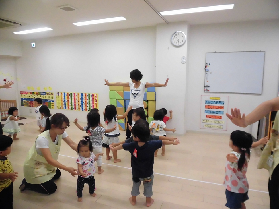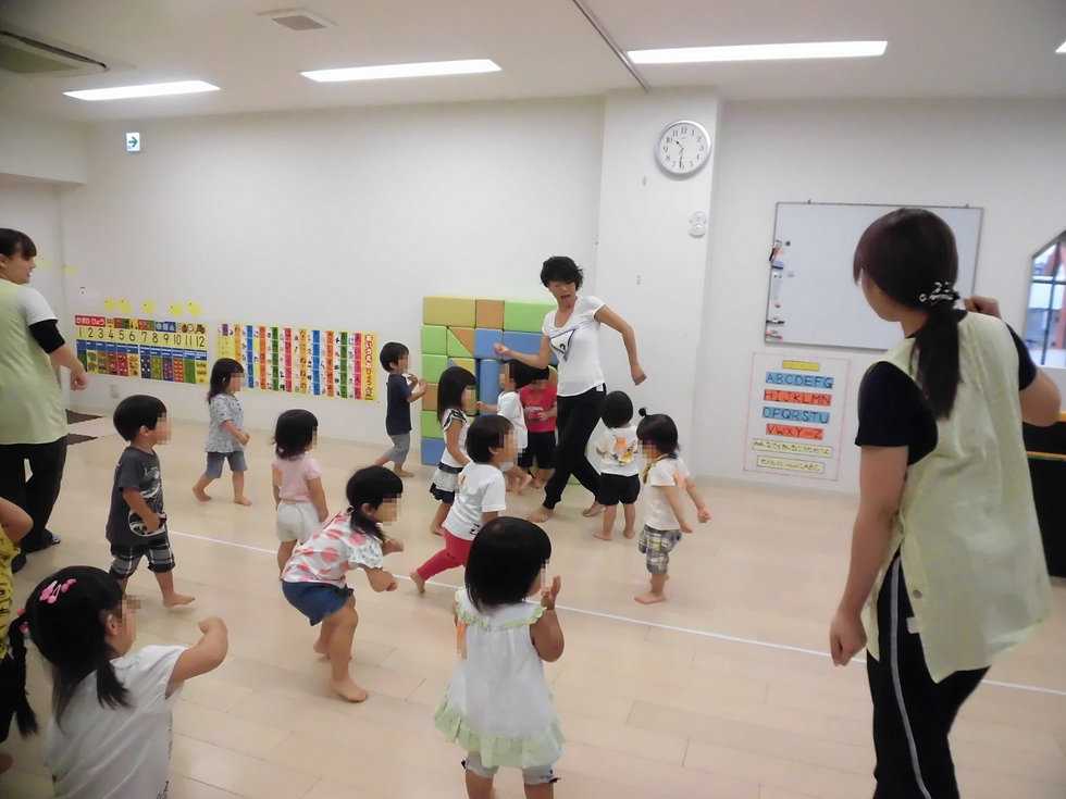 子天使ちゃん達、音楽に合わせ、Y先生の真似をして、のびのび楽しんで踊ります(^o^)。