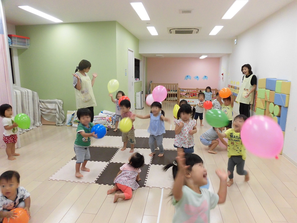 午後の設定保育の後は皆で風船遊び、ピーマンパワー全開でした(^-^)。