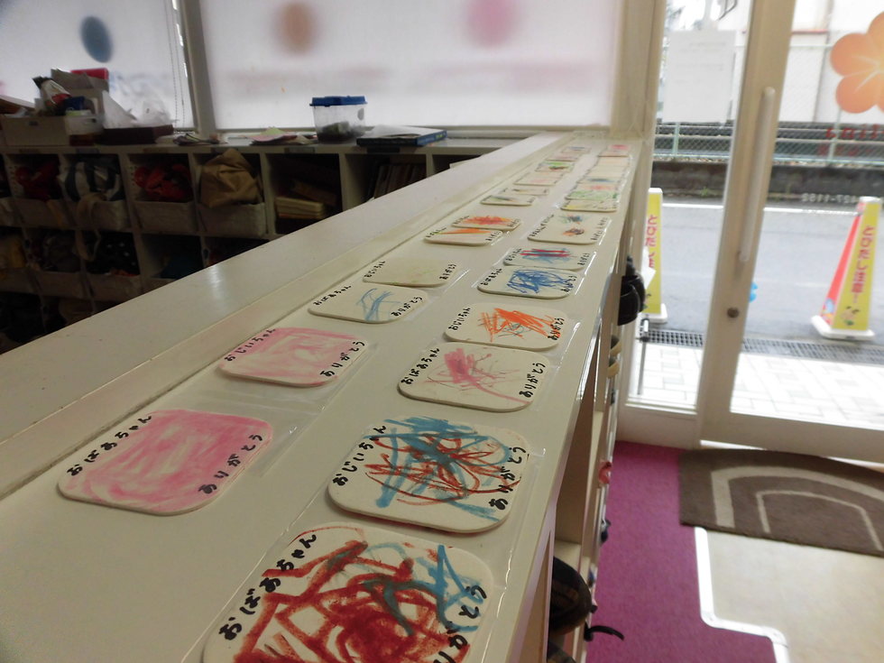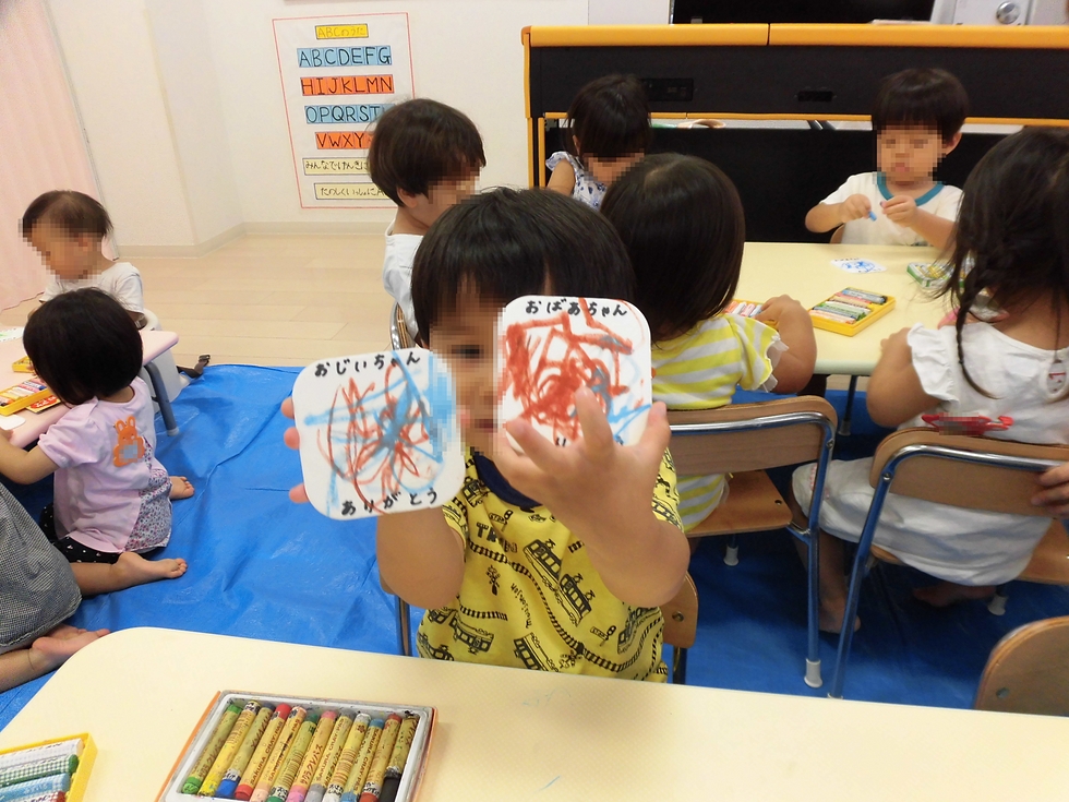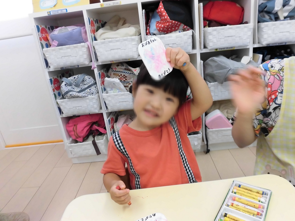 子天使ちゃん達、集中して真剣に取り組んでいます。「大好きな、お祖父ちゃんお祖母ちゃん、いつもありがとう!」(^o^)。