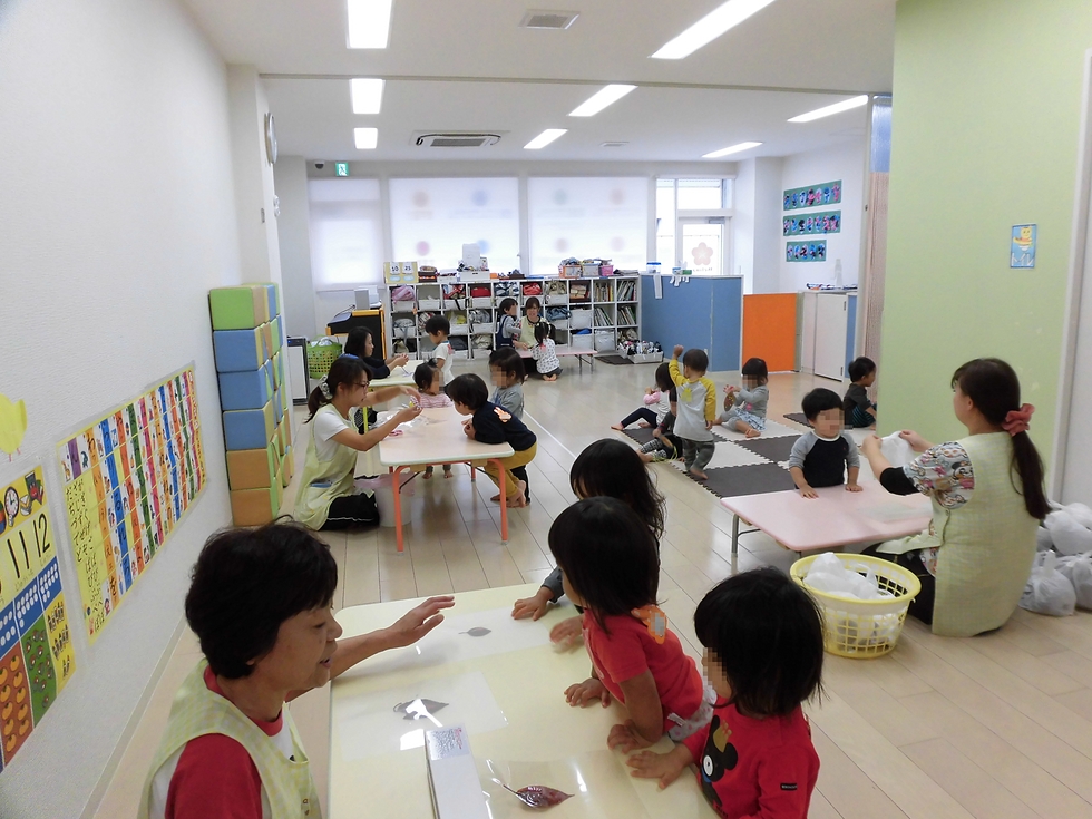 保育室内に製造ライン(流れ作業場)ができました(^o^)。(左下写真)