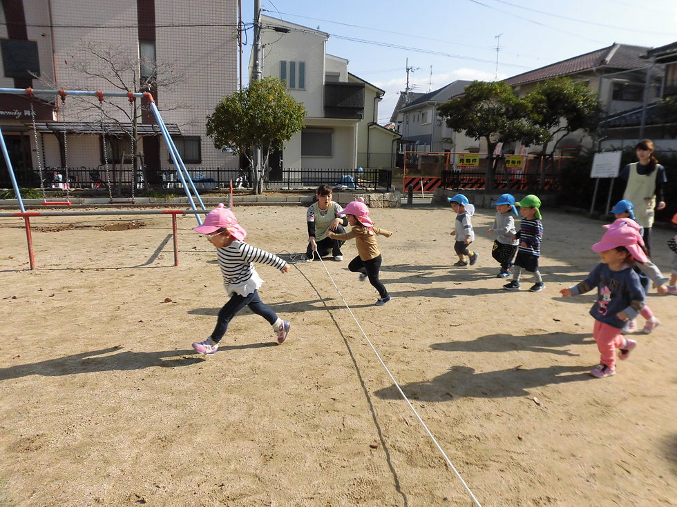 子天使ちゃん達の大好きな「オオカミごっこ(鬼ごっこに似ています)」から始まって「なわとびレース」に「おしくらまんじゅう」などなど・・