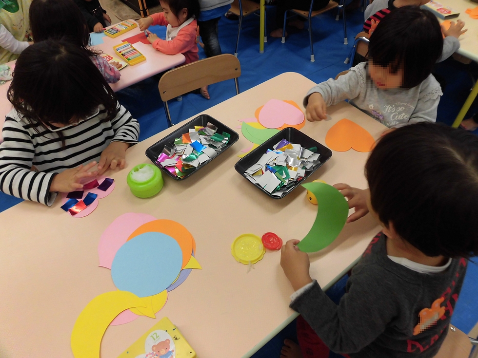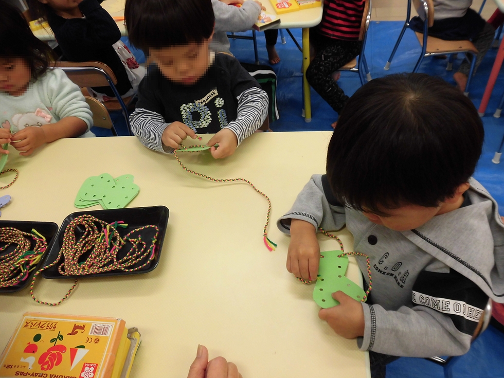 お次は飾りを作ります。描いたり、貼ったり、毛糸を通したり〜みんな真剣です(^-^)。
