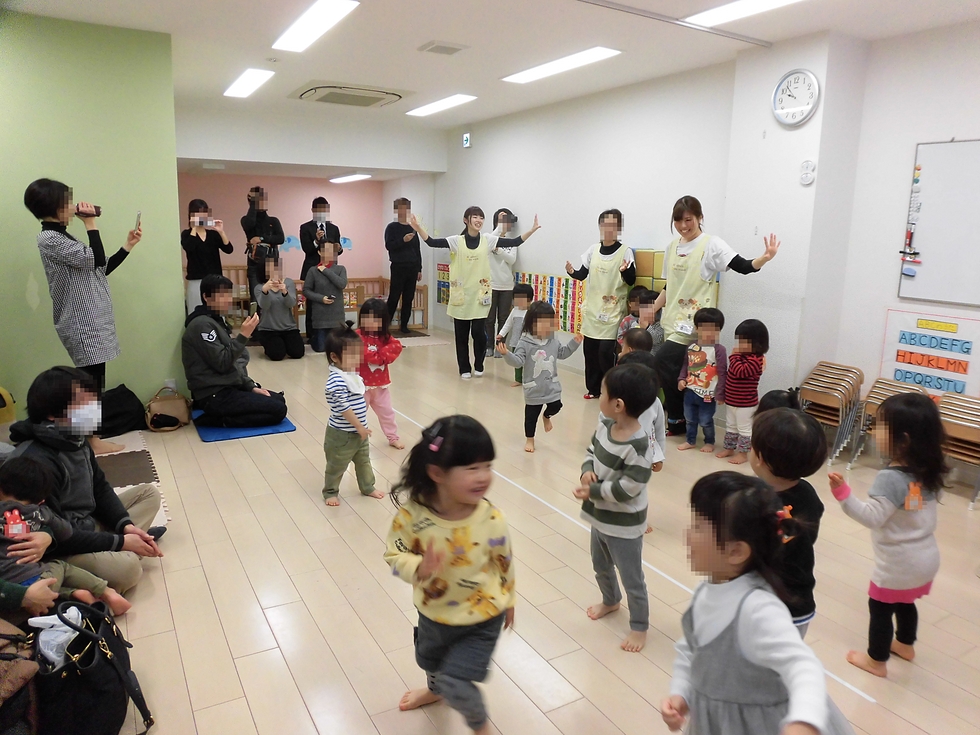 朝のご挨拶、お歌、体操、朝の設定保育、おトイレとお茶休憩をはさんで英会話、この頃になると子天使ちゃん達もほぼいつもの調子に(^-^)。