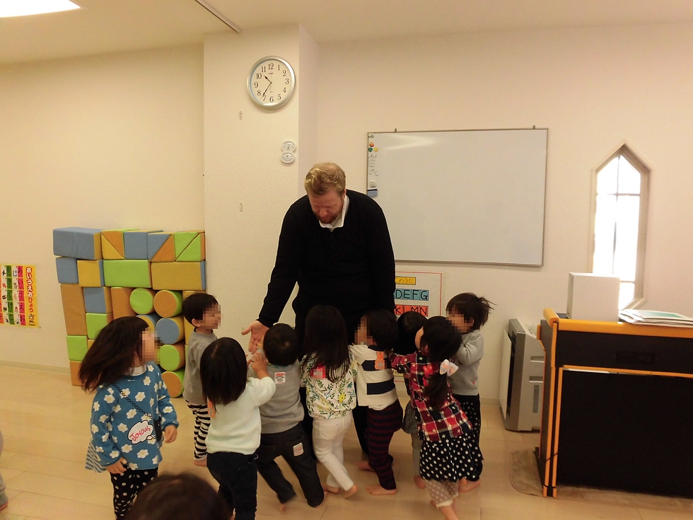 レッスンが終わると子天使ちゃん達、先を争ってJ先生に抱きつきにいきました(^o^)。これにはJ先生もビックリ(笑)。