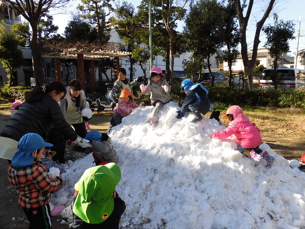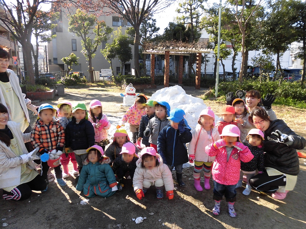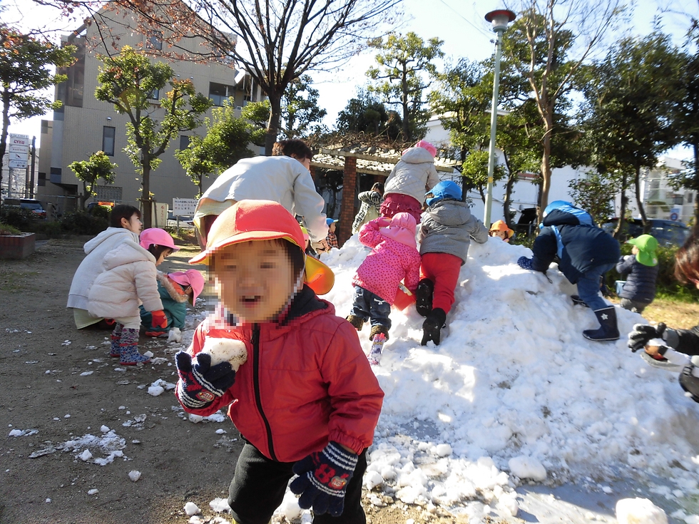 雪合戦が始まりました!予想通り今年も園長ばかりが狙われます・・「なぜ?」(笑)。