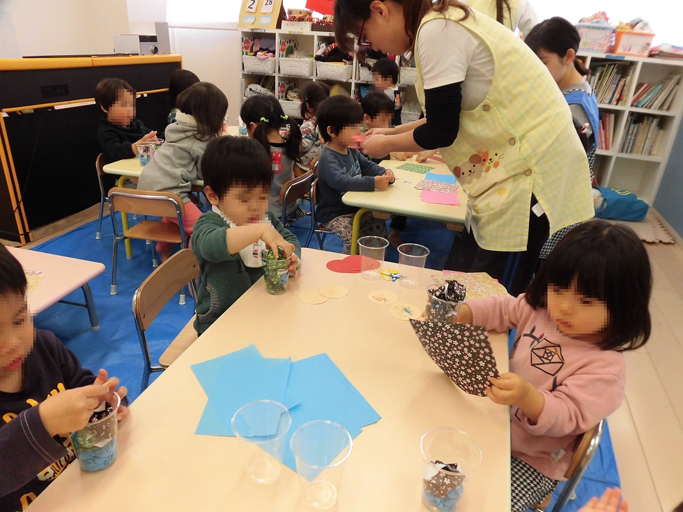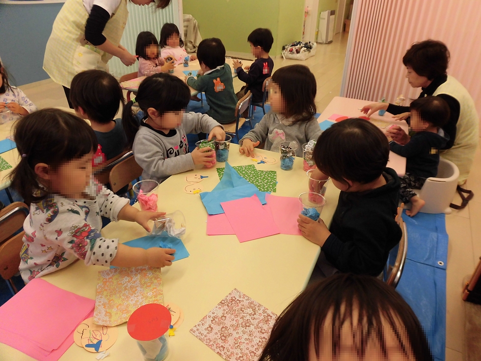 もうすぐひな祭り。子天使ちゃん達はひな人形作りに挑戦です(^-^)。