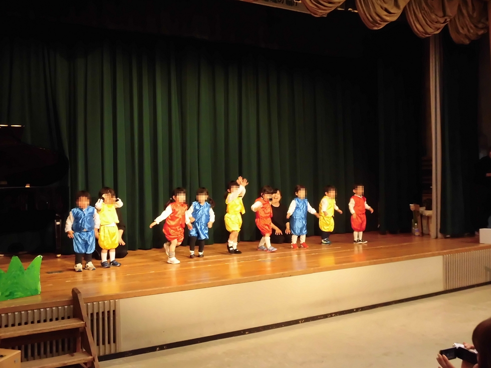 左下はオレンジ組・黄組(0・1才児)子天使ちゃんによりますお遊戯。