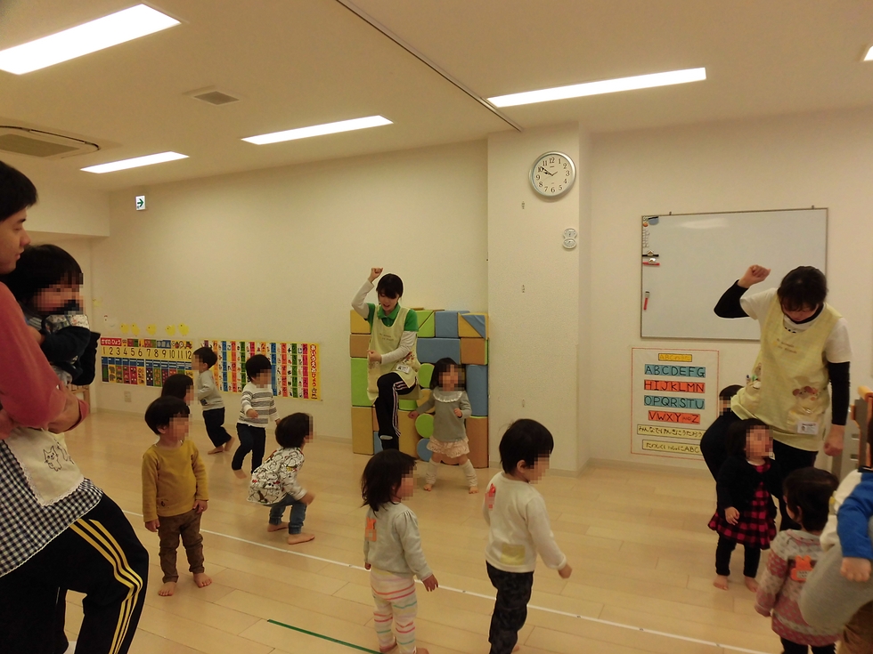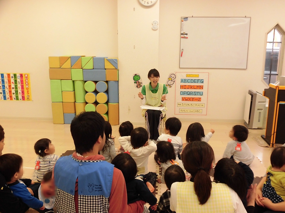 Welinaでは子天使ちゃん達に落ち着いてもらい集中力を高めていくためにペープサートから始まります。可愛いペープサートと楽しい先生のお話を子天使ちゃん達は興味津々注目しています(^-^)。