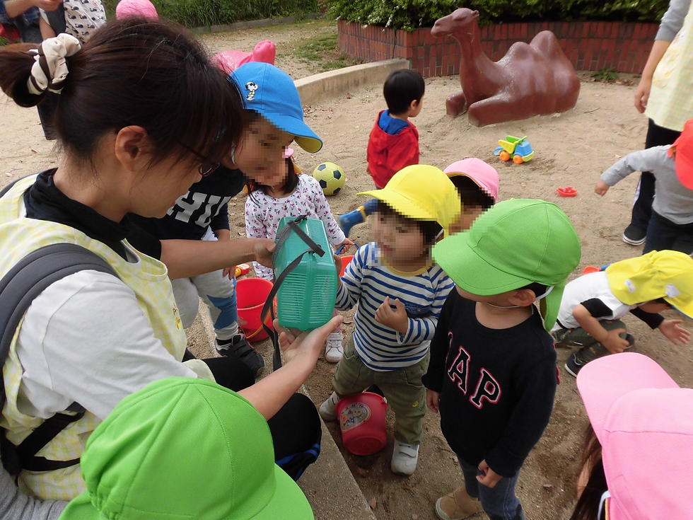 左下写真は「僕も捕まえるぞ〜!」っと勇ましく、ダンゴ虫を捕まえた赤組男子(^-^)。(笑)