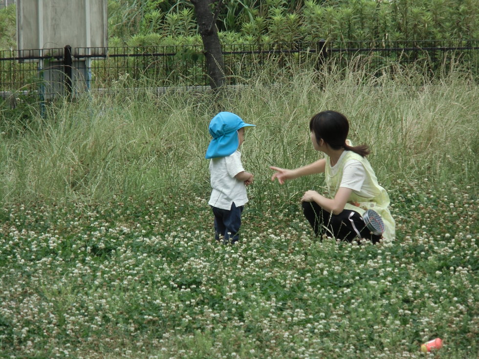 お友達と走り回ったり、お砂場遊びの合間には「白つめ草でかんむりを作ったり」「紫かたばみの花の蜜が甘かったり」「山ももの赤い実がすっぱかったり」「三つ葉草のひっぱり相撲をしたり」「草笛を鳴らしてみたり」を経験します。