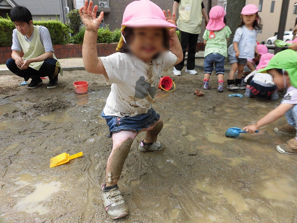 子天使ちゃん達も先生達もすごく楽しんだ泥んこ遊びでした(^o^)!