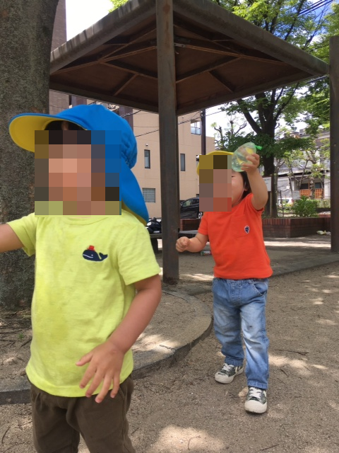 水鉄砲か水爆弾を持っていないお友達は狙いません、2才児だと言って侮るなかれ、ちゃんとルールを守って遊ぶことが出来るんですよ(^-^)。