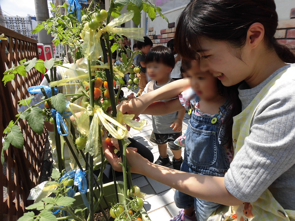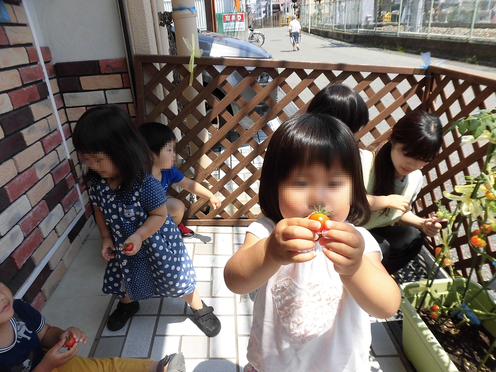 今年はいいお天気が続いています(暑すぎますが・・汗)。園のトマトとキュウリは豊作なんです。もちろん子天使ちゃん達のお世話のたまものなんですよ(^-^)。子天使ちゃん達の満足そうな表情(笑)。