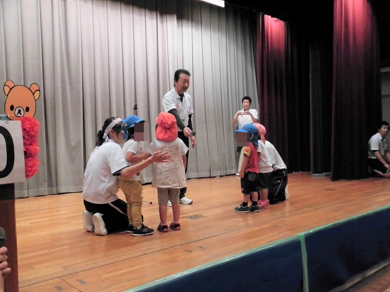 皆で元気にブンバボン体操をしたら、クマさんチームとウサギさんチームに分かれて競技の始まりです!
