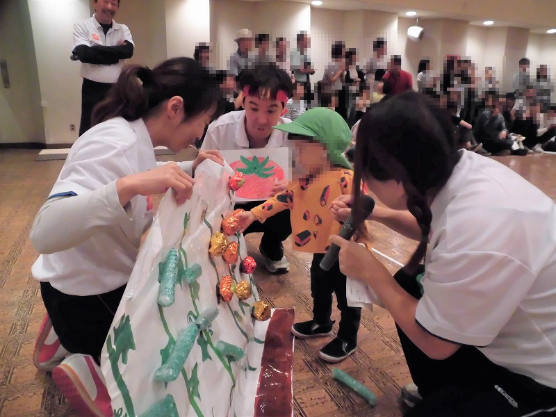 最初の競技はお野菜刈入れ競争〜(^-^)先生のパネルに従って上手に刈入れできるかな〜♪