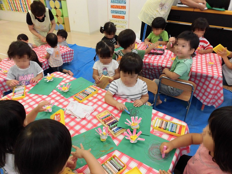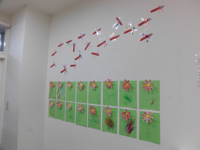 下の写真は工作プログラム「秋桜と赤とんぼ」来月は秋の保育をいっぱい楽しもうね♪(^-^)。