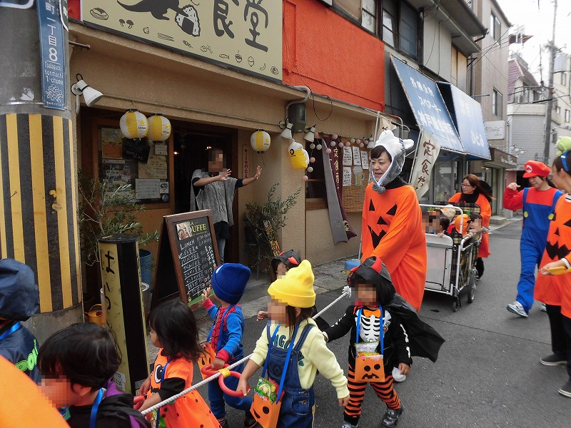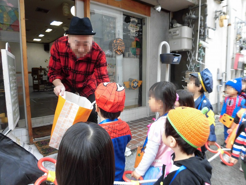 店先で大きな声でワイワイガヤガヤっとやるもんですから、はっきり言って営業妨害・・先生達はハラハラ、子悪魔ちゃん達は元気よく「Trick or Treat!」「○×△※□〜!」(笑)。