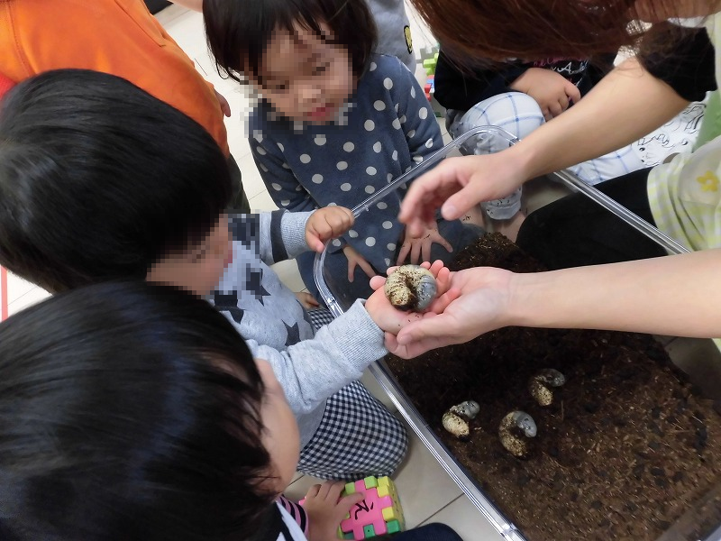 実を言うと先生方もかぶと虫の幼虫を触るのが大嫌い(笑)。