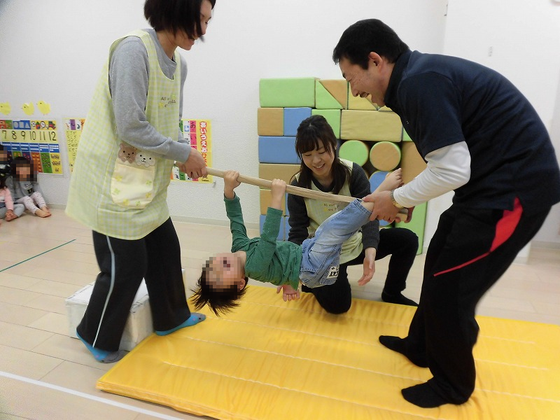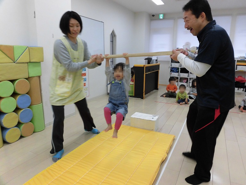 下の写真はぶら下がり、両手でぶら下がり、両手両足でぶら下がり。それにしても子天使ちゃん達、楽しそう♪どの測定も楽しみながらクリアできましたよ(^o^)。